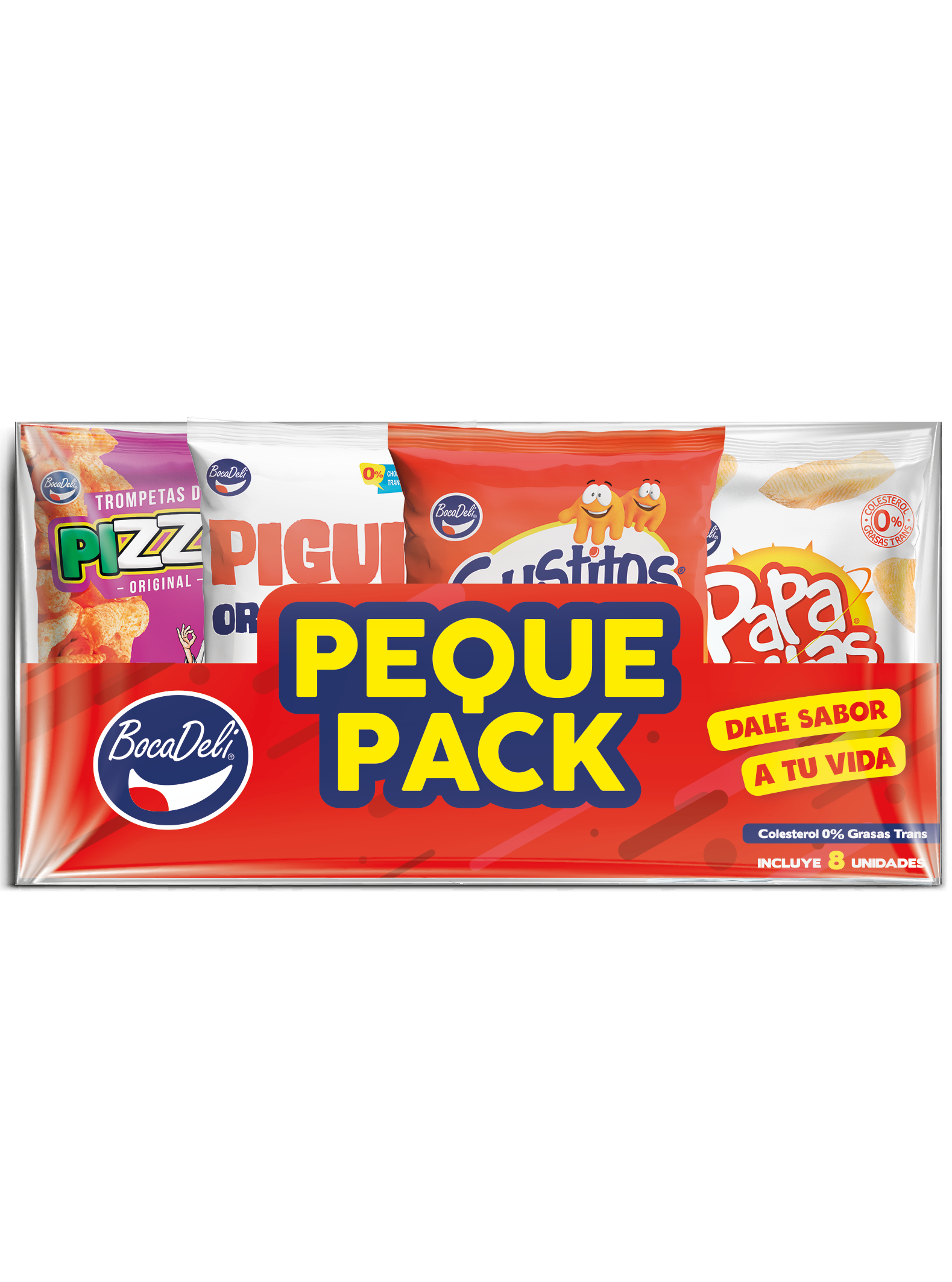 Diviértete con el Peque Pack de 8 unidades, una selección práctica de tus boquitas favoritas, perfecta para loncheras y recreos. ¡Diversión asegurada para los pequeños! Disponible en supermercados.
